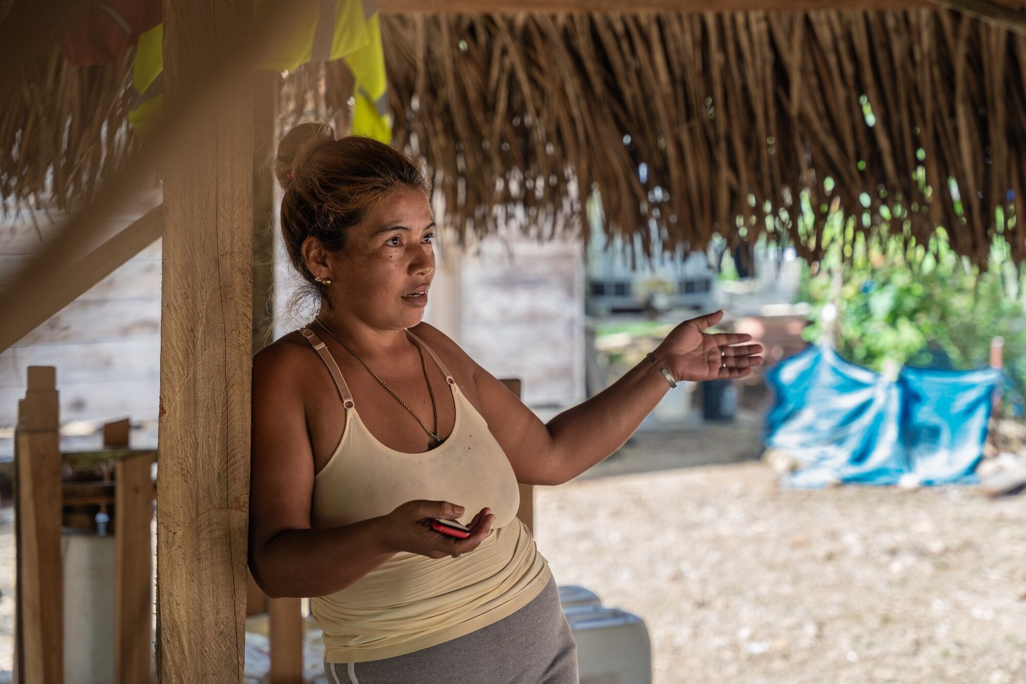 Elizabeth Delgado, de 38 años, vive en la última casa de la carretera que lleva al río Indio. Es una de las primeras que se inundarán si se construye el embalse. Durante las grandes tormentas, el Indio sube lo suficiente como para llegar a pocos metros de su casa de madera sin pintar, donde su familia sobrevive a base de arroz, plátanos y mandioca que ella cultiva. No tiene intención de mudarse.