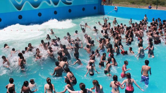 Pero la atracción más buscada por quienes visitan este complejo es una pileta con olas artificiales de diversos tamaños, las cuales están acompañadas con entretenimiento y música.