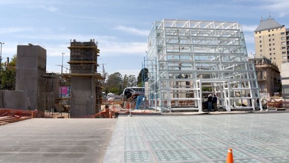 Si bien el edificio en sí nunca estuvo en riesgo, sí lo estuvo todo el perímetro de la plaza. Por caso, los tótems llegaron a perder toda su verticalidad: “Hubo que volver a enderezarlos con gatos hidráulicos y a algunos los tuvimos que rehacer por completo. Esta es la obra que se ha estado ejecutando durante estos dos últimos años y ha demorado el porcentaje faltante efectivo: los revestimientos, el aire acondicionado, el ascensor y demás. No lo podíamos hacer hasta no solucionar lo anterior”.