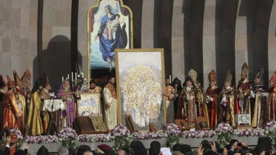 A las 11. Misa en Iglesia Armenia Surp Kevork, en homenaje a los santos mártires del Genocidio Armenio. Ceremonia de Intercesión de los santos mártires frente al monumento de Dzidzernagapert.