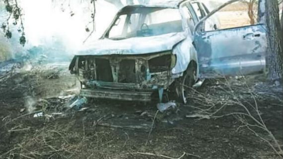 En el camino algo sucedió. Misteriosamente, en el kilómetro 43 de la Ruta provincial 13, la escena era de una camioneta envuelta en llamas. Al principio se pensó en un accidente, pero con el correr de las horas esa posibilidad quedó descartada y todo apuntó a un homicidio. A metros de la camioneta fue encontrado un bidón con nafta.