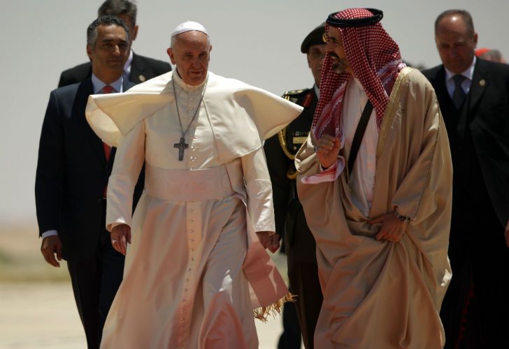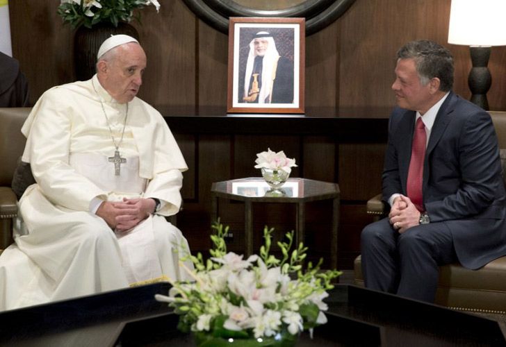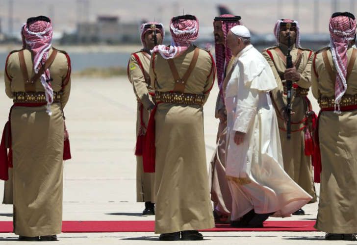 Durante su primer viaje como pontífice a esa región, Francisco viajará en helicóptero o en un automóvil normal, sin blindaje, y en algunos casos en un todo-terreno descapotable. Según informa la agencia italiana Ansa, en Ammán, primera etapa de su gira papal, fue recibido por el rey de Jordania, donde además de celebrar una misa en un estadio y se prevé una reunión con 600 discapacitados y refugiados, muchos de éstos sirios.