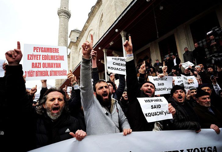 Miles de personas marcharon en países árabes en repudio a las caricaturas del nuevo número del semanario Charlie Hebdo. Gobiernos e instituciones religiosas calificaron la nueva caricatura del profeta Mahoma como "provocativa y atizadora del extremismo". Las protestas tuvieron como destino las embajadas francesas en esos lugares.