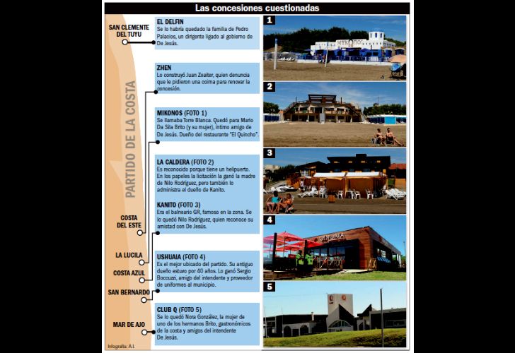 También fueron beneficiados los hermanos Brito, dueños del restaurante “El Quincho” donde varias veces se vio compartir la mesa a De Jesús y sus amigos. Consiguieron tres, algunos de ellos en sociedad con un concejal de Tres de Febrero (Angel Torres) quien desembarcó de la mano de Diego Cardosi, otro amigo del grupo. Desde el equipo del intendente no hubo respuesta a la consulta. “Es una situación vergonzante que venimos reiterando. El modus operandi de repartirse los balnearios con los amigos del poder grafica lo que es el kirchnerismo en La Costa”, describió el concejal Marcos García. Los balnearios pueden dejar una ganancia de hasta dos millones de pesos por temporada. Y en La Costa se transformó en un negocio para los amigos.