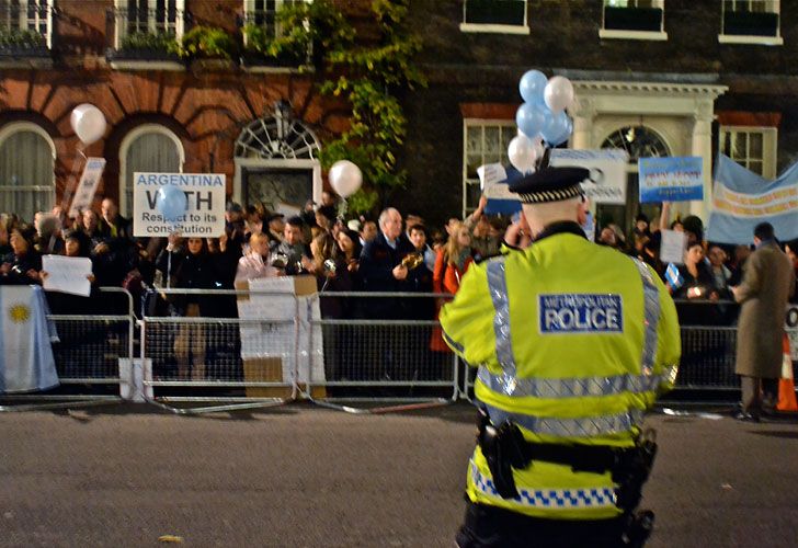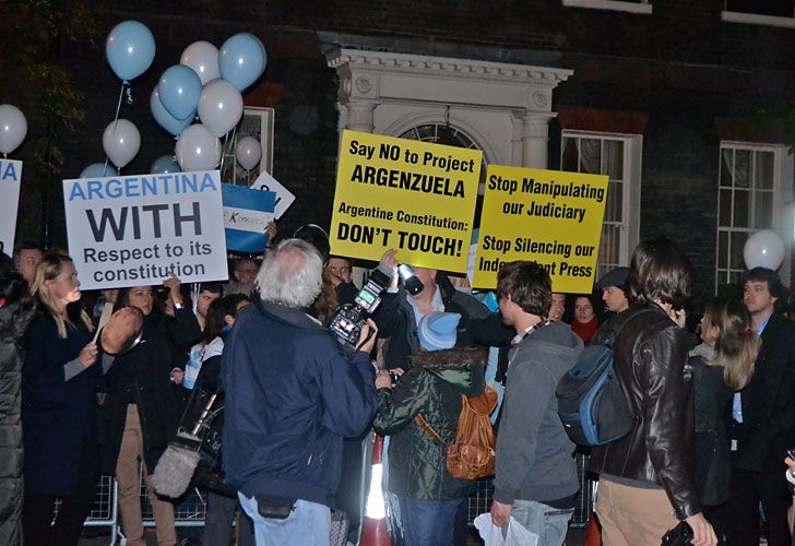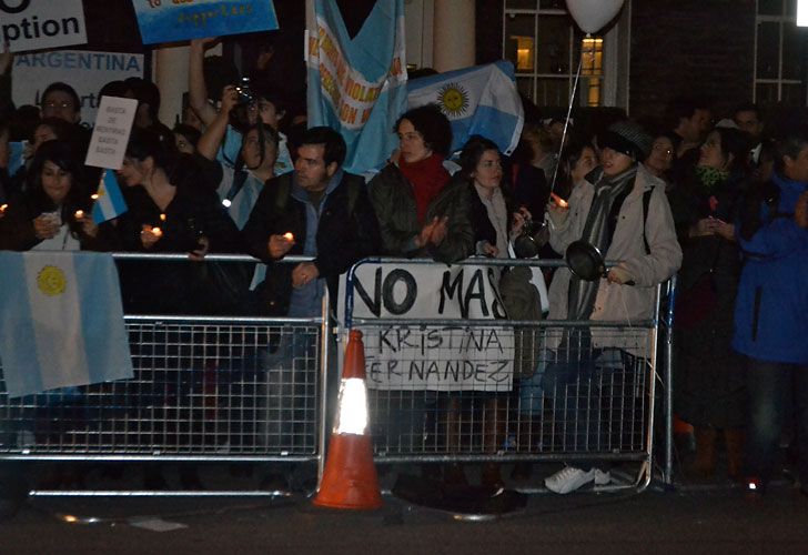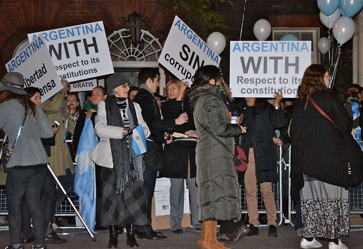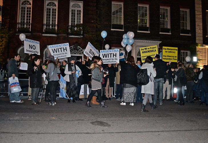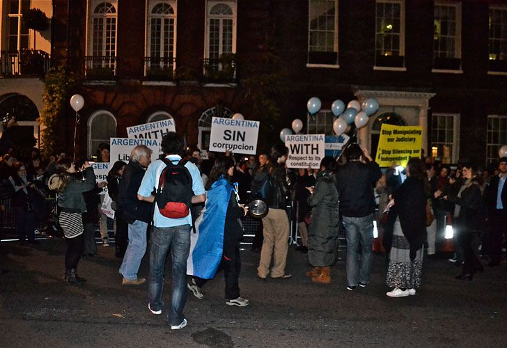 Con cacerolas y sartenes, unas 150 personas protestaron en el marco del "8N" frente a la embajada argentina en Londres, ubicada en el 65 de Brook Street.