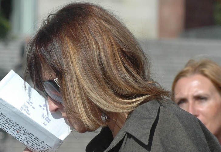 Mientras esperaba en el pasillo del quinto piso en los tribunales, jamás se quitó sus lentes italianos marca Gucci, favorita de celebridades como Charlotte Casiraghi, hija de Carolina de Mónaco, con gafas Fendi también en su colección. Con botas Paruolo, un maletín de cuero Humawaca y un corte de pelo ombré con reflejos en puntas y alisado por baño de keratina –muy de moda esta temporada y que en peluquerías como Llongueras cotiza en 550 pesos– el combo asciende a un total de 5600 pesos, detallado en esta infografía.