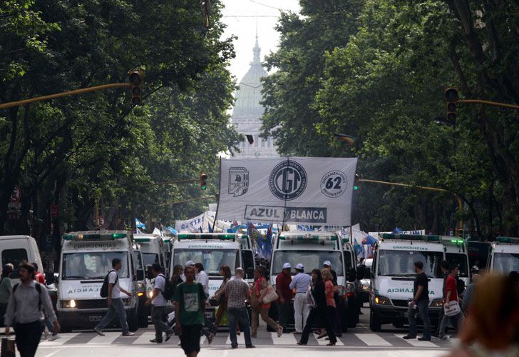 "Están atacando a los compañeros, con lo que están haciendo con la ley de ART y con el uso que hacen de la plata de las obras sociales", aseguró a Perfil.com uno de los trabajadores. Participaron de la movilización miembros de los gremios de camioneros, gastronómicos, empleados de estaciones de servicio, panaderos y empleados de maestranza, entre otros.
