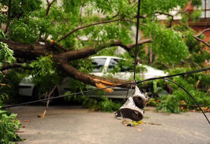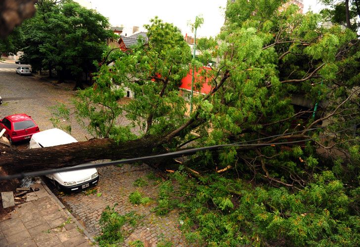 El temporal de lluvia y viento que azotó a Capital Federal y Gran Buenos Aires ayer, minutos antes de la medianoche, provocó la caída de árboles y daños en viviendas y automóviles.