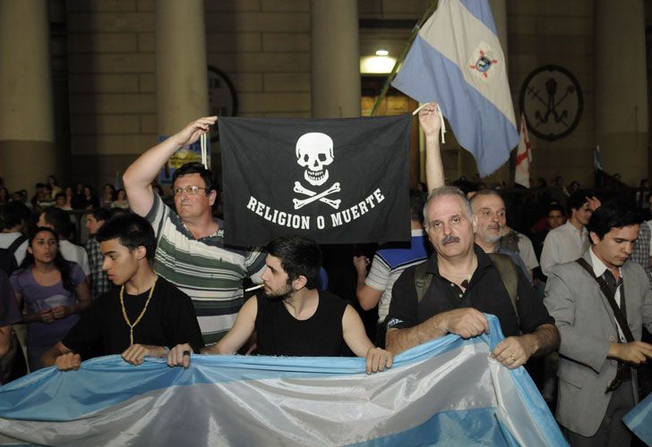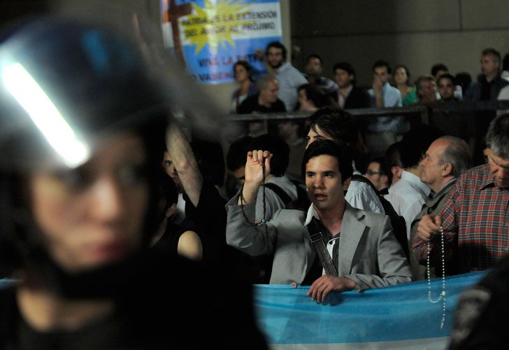 Al grito de "Cristina está con la Iglesia y la patronal" y otros cánticos, grupos proabortistas, integrado por militantes de organizaciones sociales y partidos de izquierda, intentaron avanzaron sobre el vallado tendido alrededor de la Catedral, detrás del cual aguardaban a los manifestantes militantes antiabortistas con carteles y rosarios en sus manos.